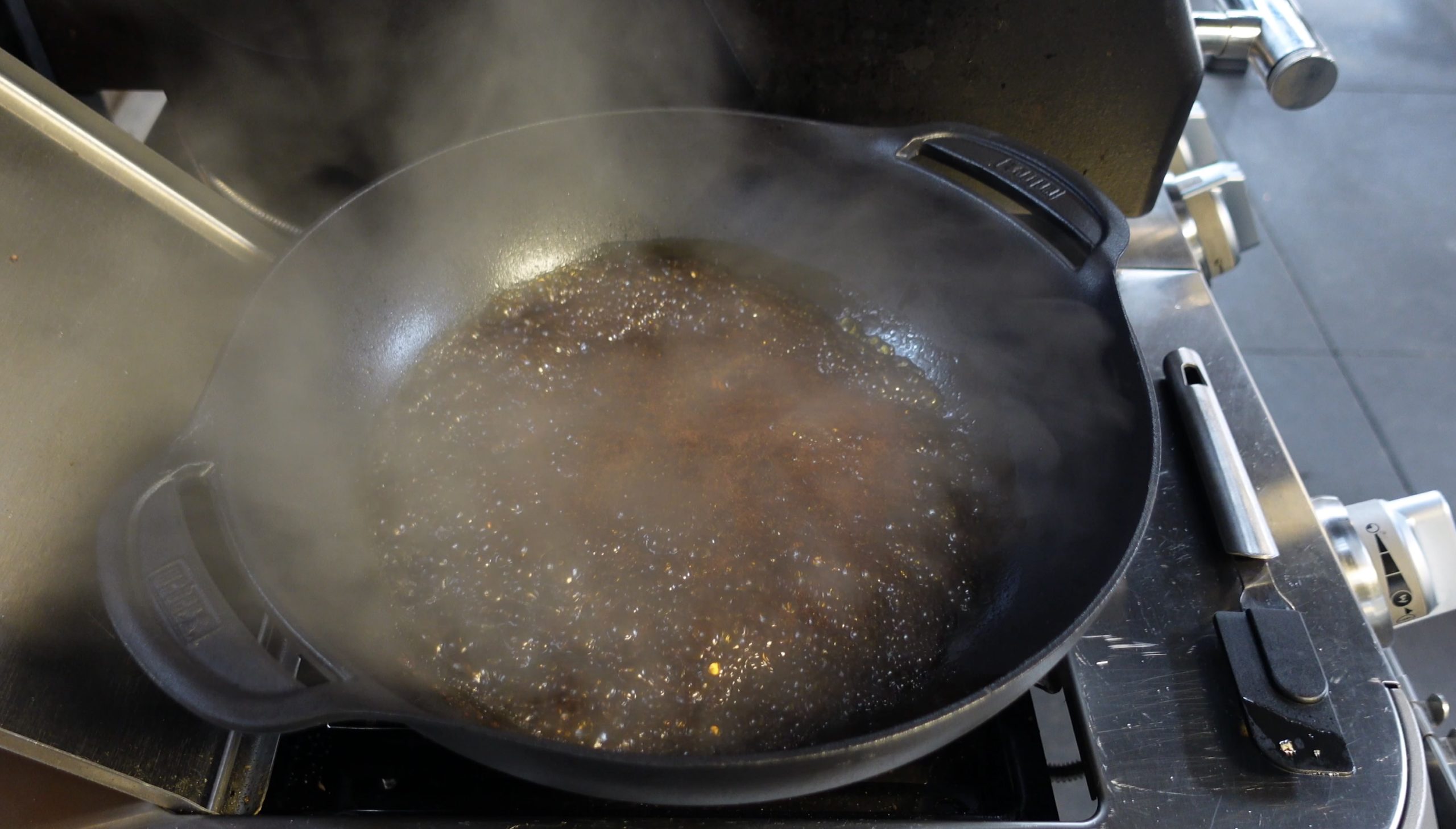 - Haal de wok van de barbecue. Giet je zelfgemaakte teriyaki saus in een kom, maak de wok weer schoon en plaats terug op de barbecue en laat warm worden.