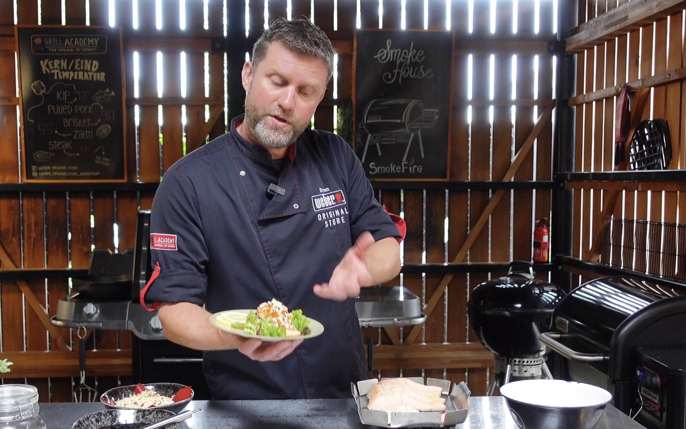 Gestoomde zalm met teriyaki en gepofte rijst! Een stuk zalm van de barbecue is altijd een goed idee. Je kan hem roken, bakken of op een plankje bereiden. Stomen gaat ook verassend goed in samenwerking met de Crafted Wok. Hier zit namelijk een stoommandje bij. In dit recept gebruik je de wok voor alle componenten van dit gerecht. We gaan wilde rijst poffen in hete olie, een zelfgemaakte teriyaki saus maken en dus die zalm stomen.