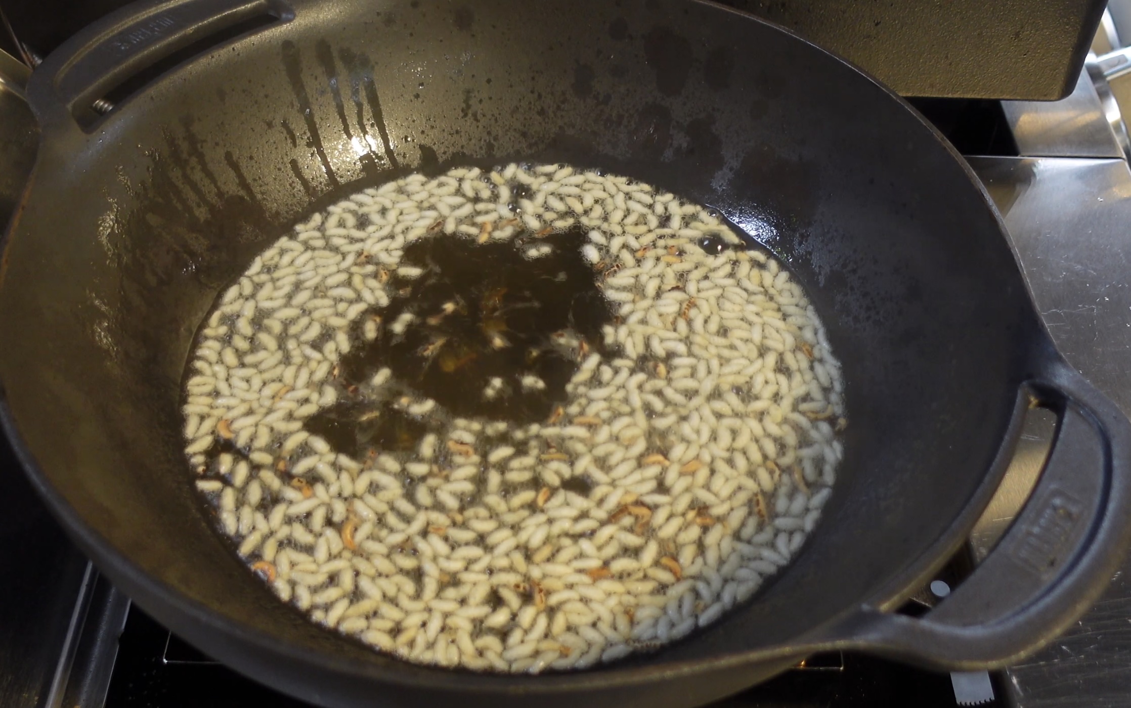 - We starten met het poffen van de rijst. Verwarm een wok op je barbecue. Als de wok warm is giet je hier de rijstolie in. Verwarm de rijstolie tot 180 graden (meet dit met een kernthermometer)