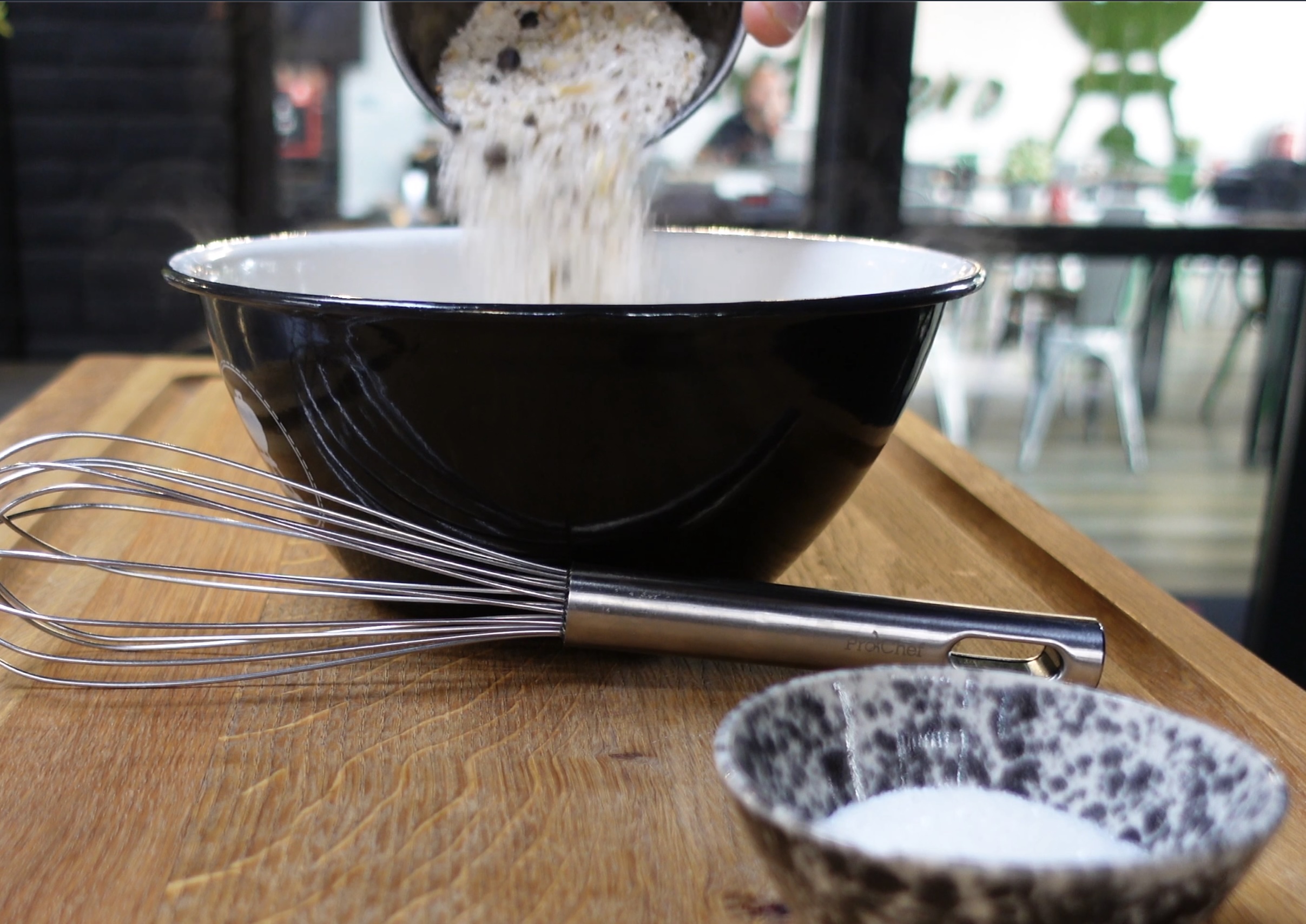 - Los het zout en de suiker op in warm water en laat goed afkoelen.