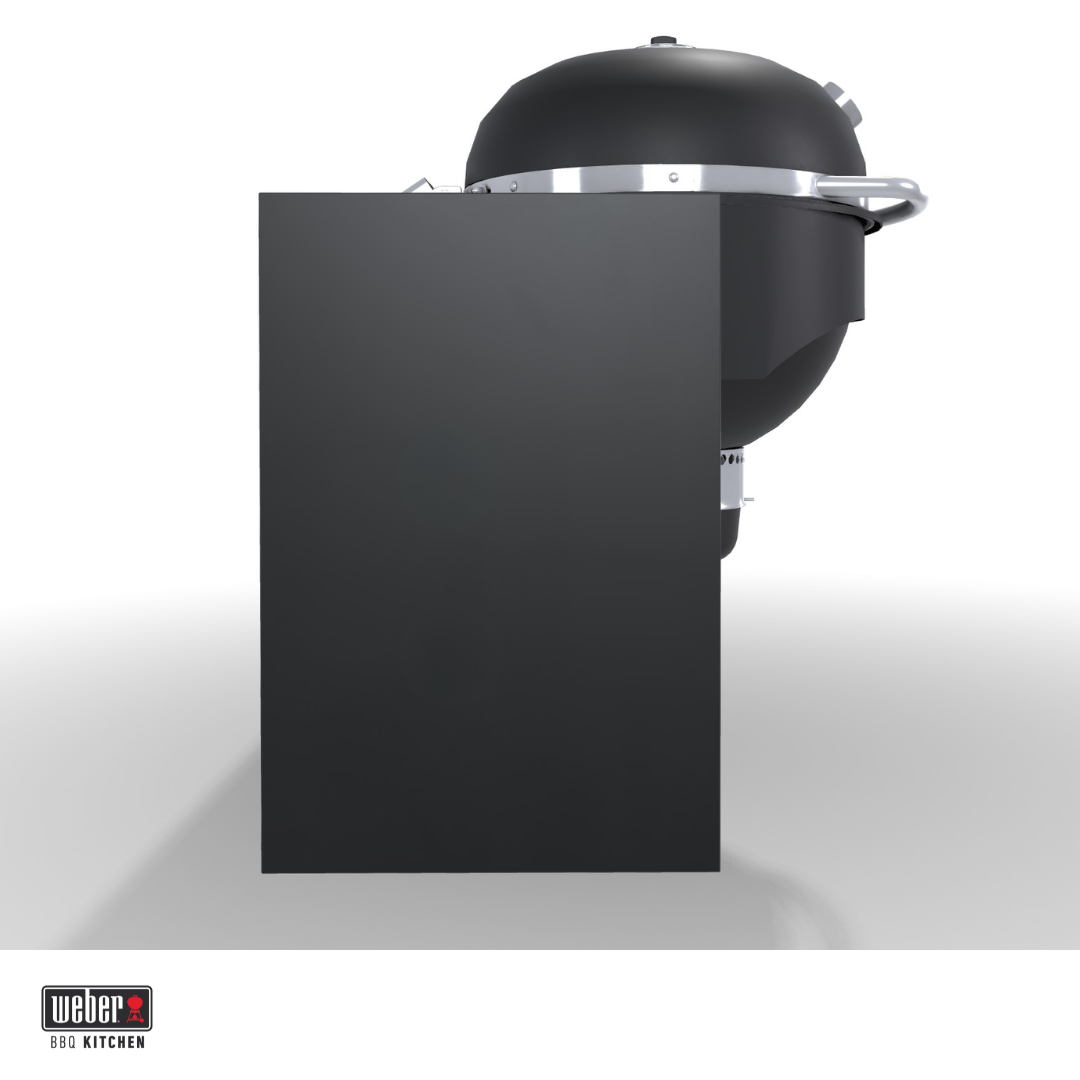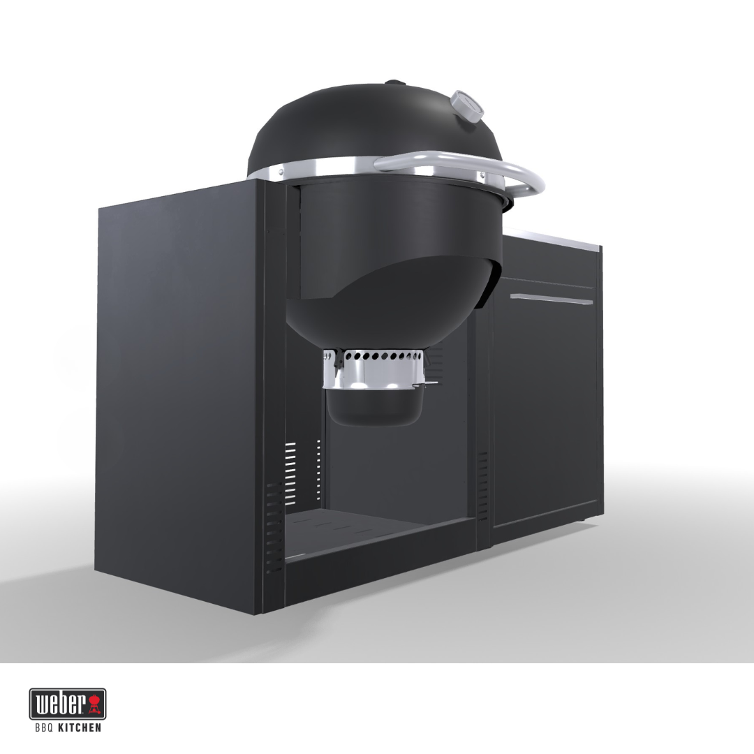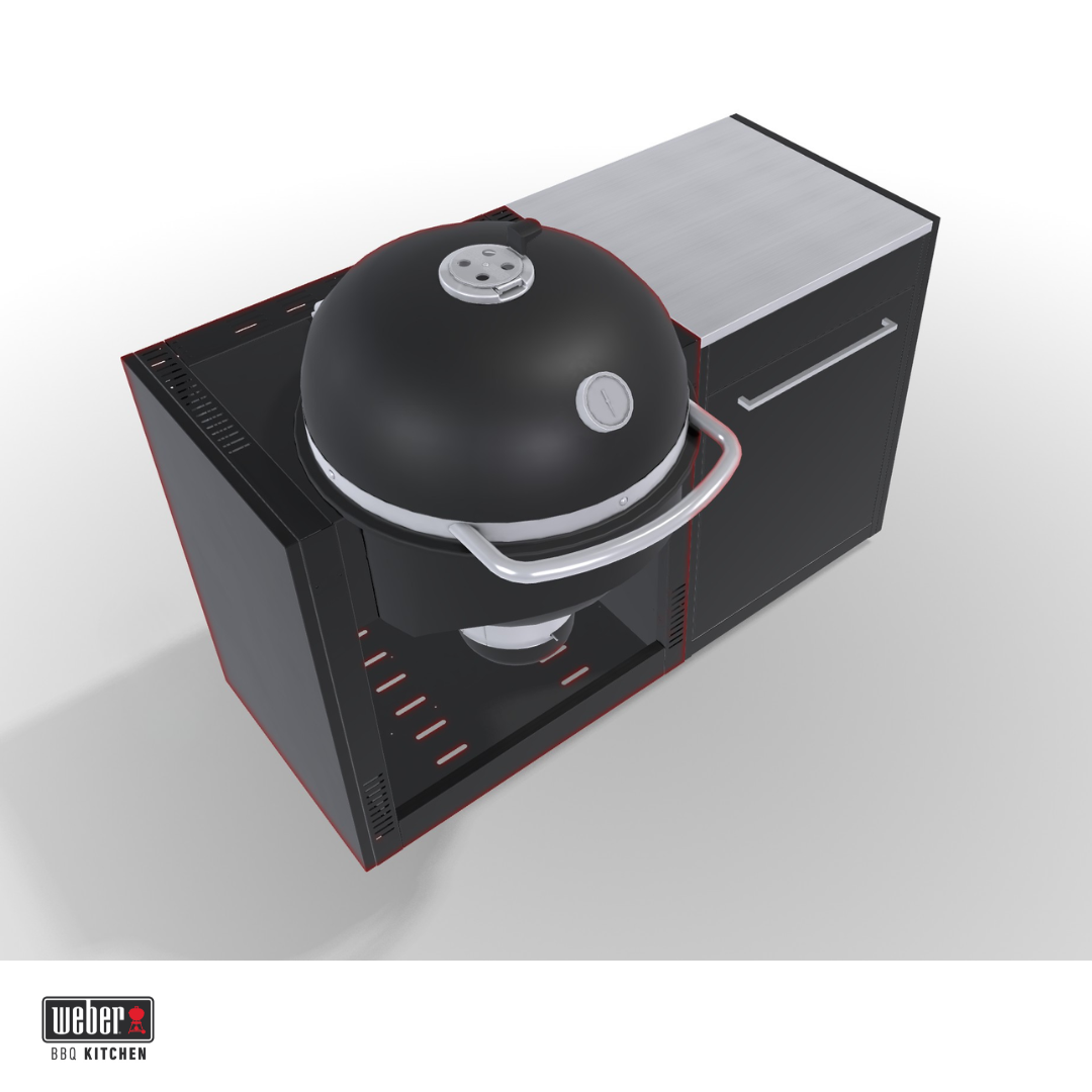 Deze BBQ Kitchen is een complete buitenkeuken met een ingebouwde Weber Summit Kamado E6. Je koopt dus in één keer een werkende, vaste opstelling waarin barbecue en werkruimte gecombineerd zijn. De indeling is praktisch: rechts of links werkruimte voor voorbereiding met een kastmodule voor opslag en aan de andere kant je kamado. Hierdoor heb je alles bij elkaar en werk je overzichtelijker dan met een losse barbecue. De Summit Kamado E6 is een veelzijdige houtskoolbarbecue met een groot grilloppervlak van 61 cm. Door de dubbelwandige isolatie warmt hij snel op en blijft de temperatuur stabiel, terwijl het verbruik laag blijft. Je kunt er zowel op lage temperatuur mee garen als op hoge temperatuur grillen.